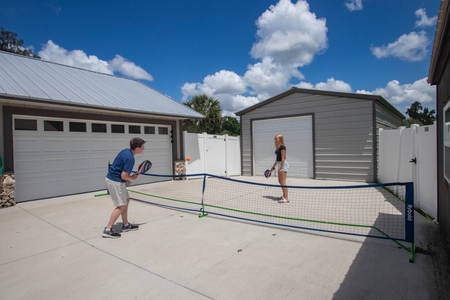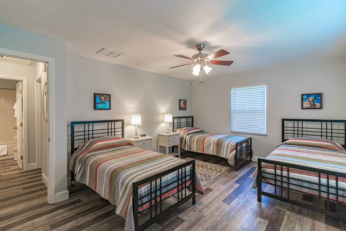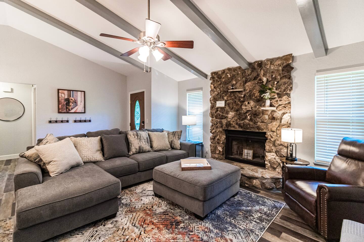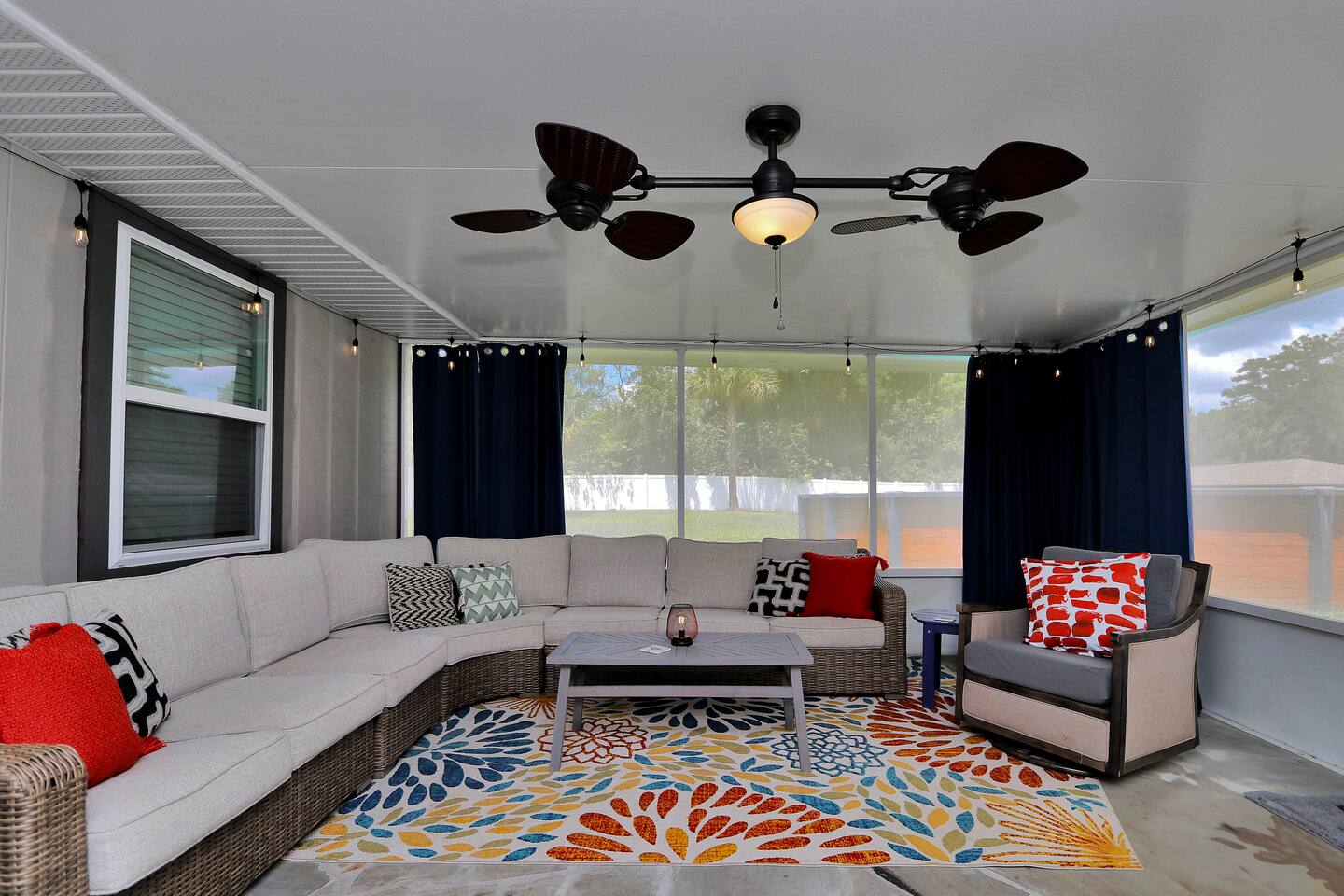 The Space 3 comfy bedrooms, 5 total beds: 2 king beds, 3 twin beds, plus a queen pull-out sofa in the detached game room. Open concept living: Relax beneath high-beamed ceilings on the sectional or recliner and stream your favorite shows on the 65″ Smart TV. Chef-ready kitchen: Modern stainless appliances, stocked pantry, and all the cookware, bakeware, and small appliances you could need. Screened lanai: Enjoy meals at the dining table for eight or sip your morning coffee on the sectional overlooking the yard/pool area. Pool oasis: 4-ft-deep above-ground pool with easy ladder entry—perfect for cooling off under the Florida sun. Detached game room: Climate-controlled and steps from the main house, featuring an 8-ft pool table, 60-game arcade, 55″ Smart TV, beverage fridge, and queen sleeper sofa. Outdoor fun: Fire pit, gazebo with Weber grill, corn-hole, pickleball setup, and agility course for furry friends. 🐾 Pet & Family Friendly We love your pups as much as you do! Up to two dogs welcome (case-by-case for more). The fully fenced 1.5-acre yard gives pets room to play while you relax. Baby gear available on request: high chair, booster seat, and pack ’n play. “Our dog felt right at home!” – Guest Review, 2023 🌴 Amenities You’ll Love Fast, reliable Wi-Fi — perfect for work or streaming Smart TVs in every room (BYOP — bring your own password!) Complimentary toiletries, towels, and starter coffee kits On-site laundry: brand-new Samsung washer & dryer in the garage 2-car garage, extended driveway & 50-AMP RV hookup 📍 Prime Ocala Location Henry’s Hideaway is just minutes from: Downtown Ocala dining and shops Silver Springs State Park World Equestrian Center Scenic hiking, kayaking, and zip-lining trails 💡 Guest Access & Extras Guests enjoy full, private access to the house, lanai, yard, pool, and detached game room. Smart-lock keyless entry makes check-in easy and secure. Rental contract required; our friendly local support team is always available if you need assistance. Experience Ocala’s charm, comfort, and endless fun at Henry’s Hideaway. Bring your loved ones (two- and four-legged alike!) and make lasting memories in this one-of-a-kind family retreat. Book your stay today and let the relaxation begin!
